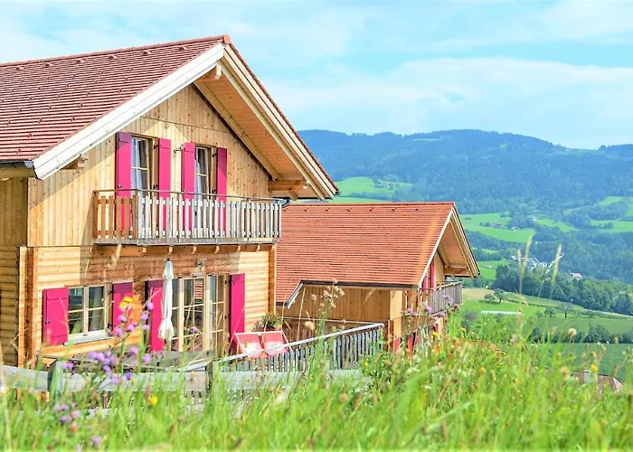 Willa Ferienhaus Mit Panoramaausblick Und Sauna - 3 Sz leży prawie 10 min jazdy autem od atrakcji kulturalnych, takich jak Echophysics, a także zapewnia Gościom usługi concierge. Willa w Pöllaubergu oferuje park wodny i ogród, a Kaiser Franz Josef Jubilaums-Brunnen jest w prawie 2 km.